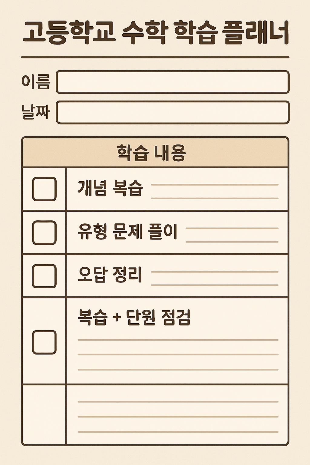 📅 추천 수학 공부 루틴 예시