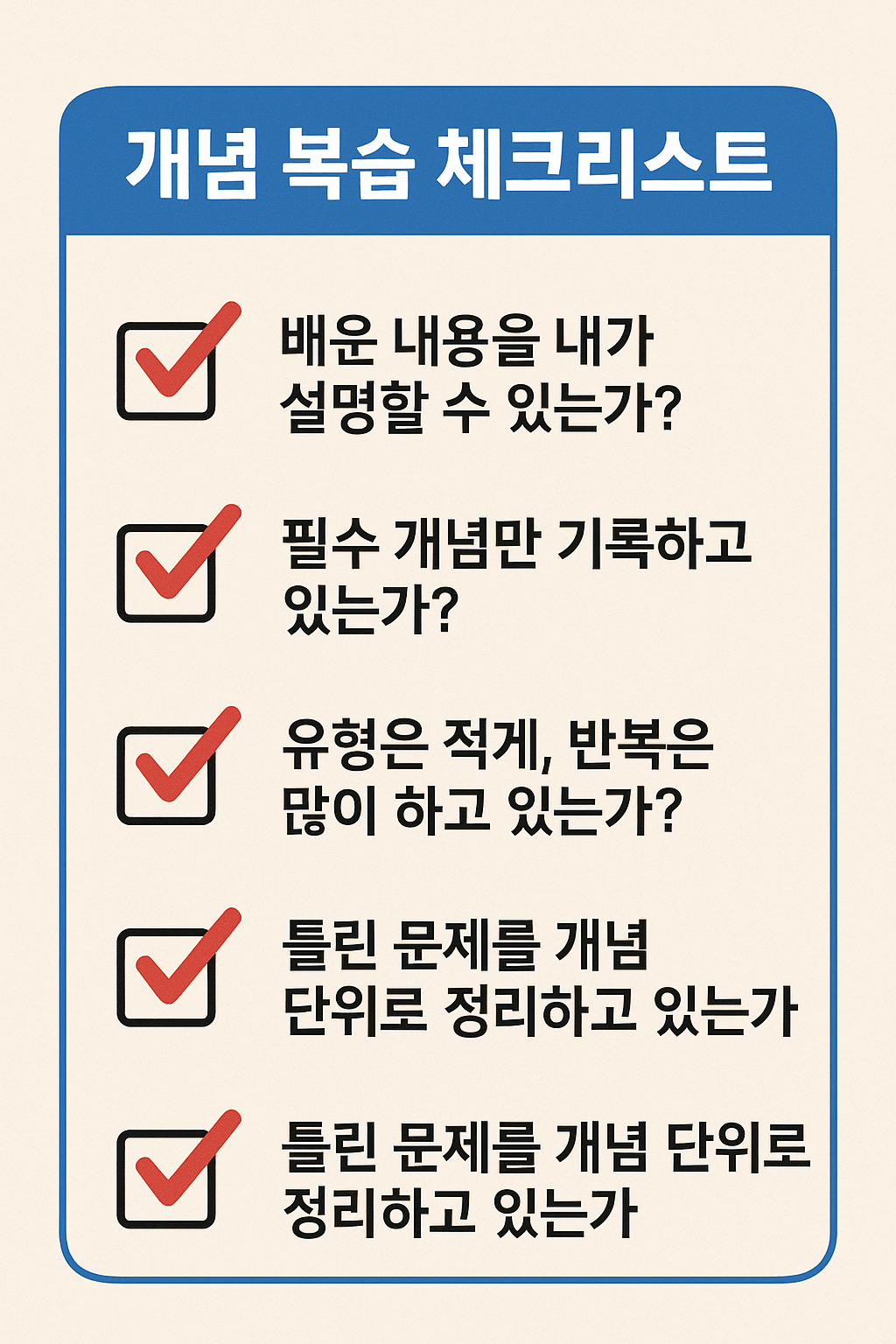 ✔ 실력 차이는 “얼마나 정확하게 개념을 복습했는가”에서 만들어짐
